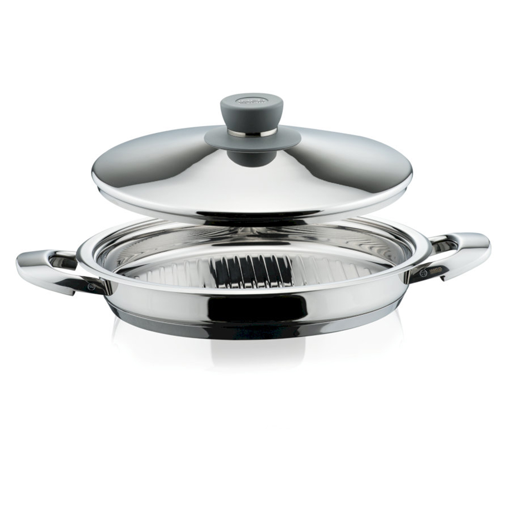 Tutte le unità di cottura offrono la possibilità di scegliere tra la classica maniglia in acciaio e bachelite (adatta a tutte le fonti di calore) e la moderna maniglia in acciaio (consigliata per l’induzione).